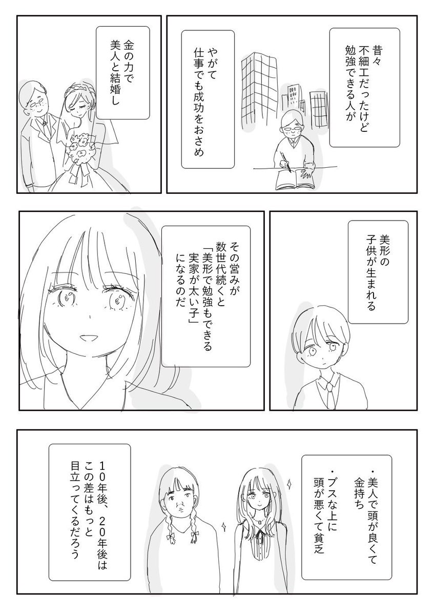 そういう子供がラウンジ嬢とかになって金持ちと結婚するから結局美人が勝つ