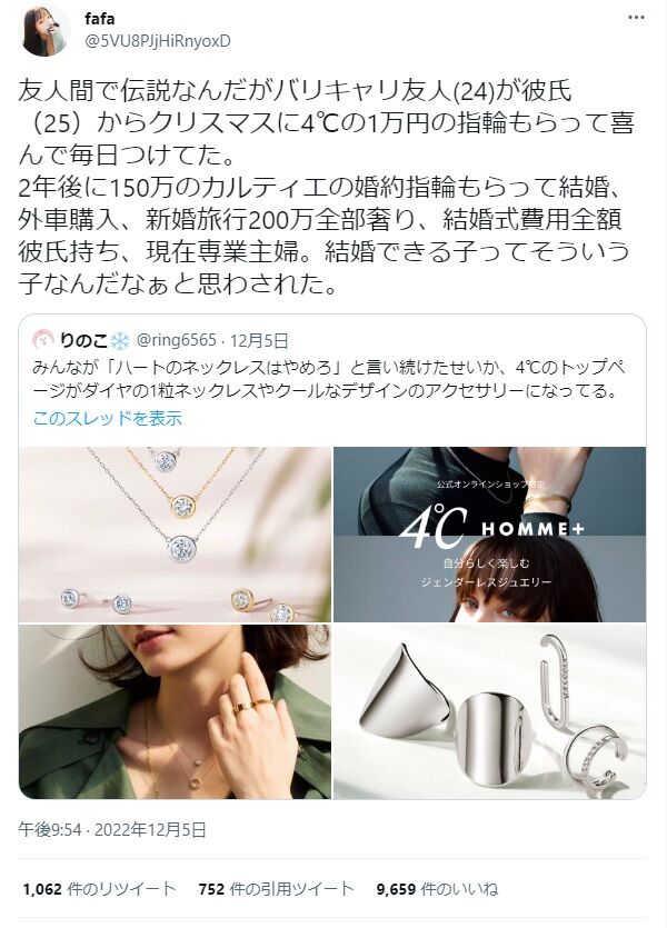 ブライダル4℃の指輪プレゼントしてしまったワイは?
