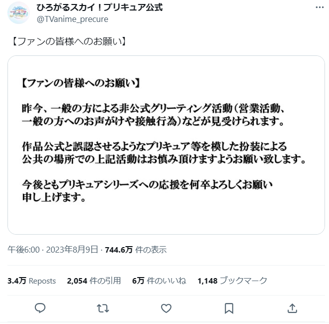 プリキュアって東映だっけ? 法務がしっかりしてるなら犯人許さないで対応するとええな