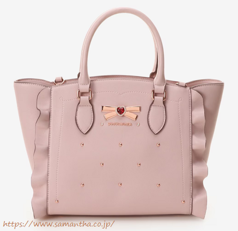 サマンサタバサのピンクのフリルのバッグとラメのニットワンピで