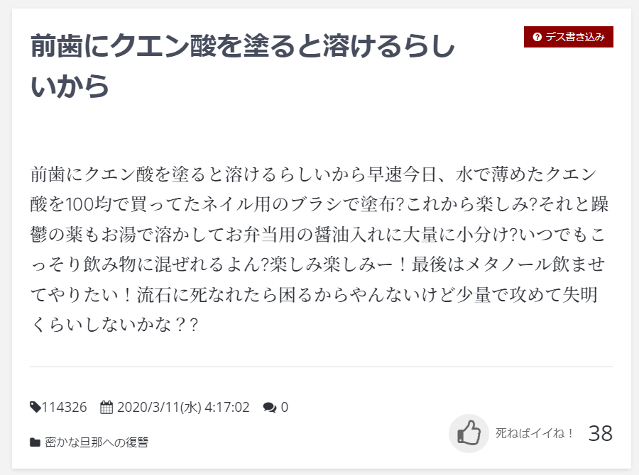 妻無職のくせに旦那は働いてて失明させられたんやろ?
